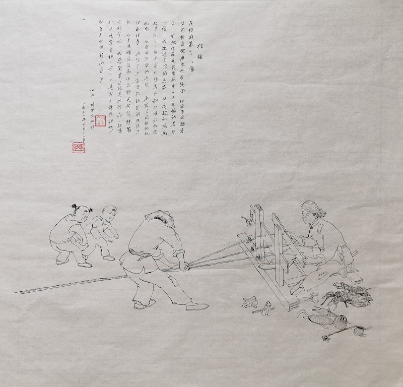 2026年1月民俗画作品(打绳)在荣宝斋参展中荣获三等奖,并收藏。
